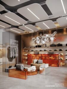 Os móveis da loja não servem apenas para expor produtos. Eles organizam o espaço, conduzem o olhar e reforçam o estilo da marca. Expositores minimalistas, móveis com design marcante ou soluções sob medida podem se tornar assinatura visual da loja.